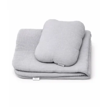 Ložní souprava s polštářem, šedý mušelín, 80×70 cm